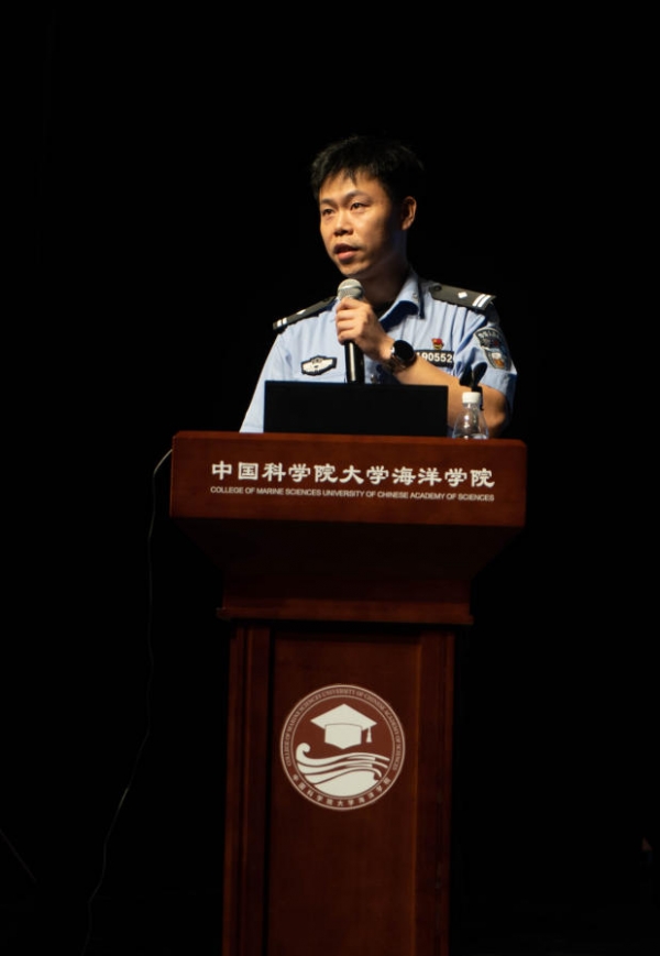 青岛市公安局海岸警察支队滨海派出所的郭强警长为新生开展安全培训。郭警官通过真实案例,为新生讲解了防诈骗、反邪教、防火防盗以及交通安全等方面的知识,提醒大家增强安全意识和应对突发事件的能力。