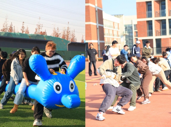 在“聚力拔绳”现场,参赛队员紧握长绳、身姿后倾,整齐划一的口号响彻赛场,紧绷的臂膀与坚毅的眼神,无不彰显着“人心齐,泰山移”的集体精神。“趣味接力跑”中,各队伍选手取长补短、各展所长:夹球组背靠背稳步前行,两人三足组步伐协调互相信任,踩砖过河组从容不迫脚踏实地,运球跑步组则活力无限激情四射,每一个环节都展现着团队协作的力量。